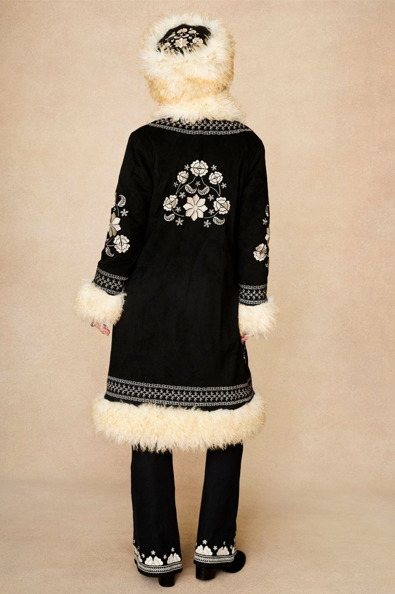 Breaking Hearts Long Black Embroidered Penny Lane Coat